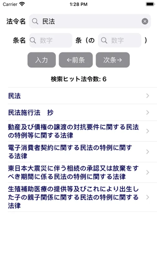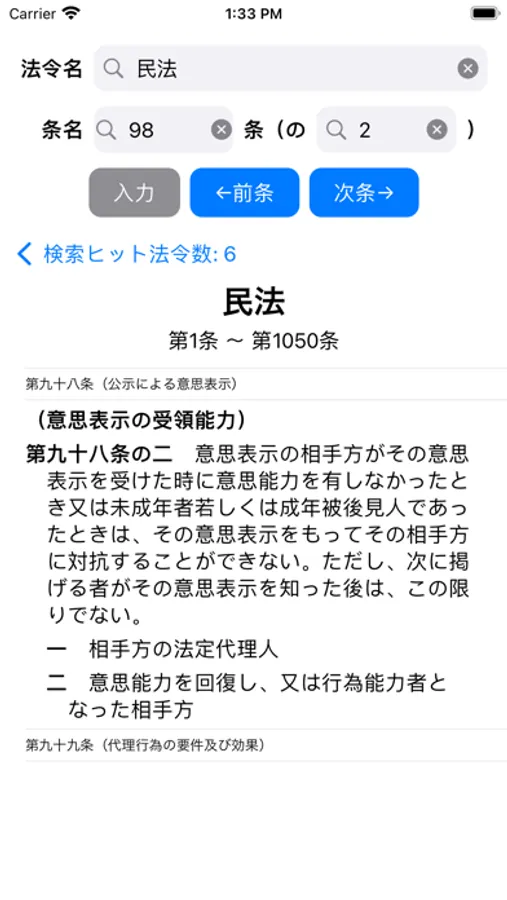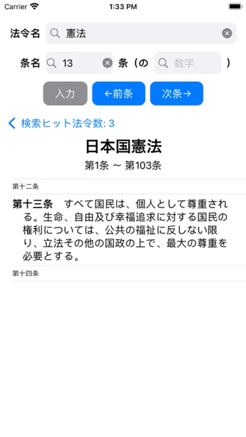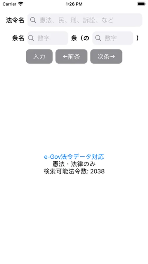 e-Gov準拠の法令(憲法・法律)の一条文を簡単に表示するアプリです。
