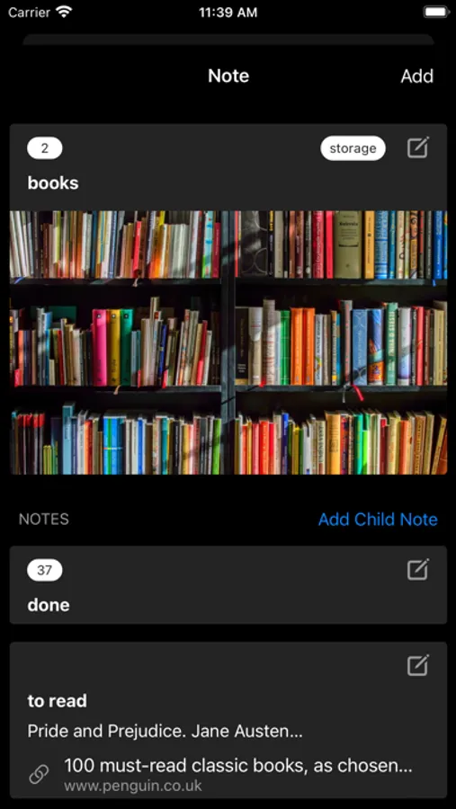 • Pin notes on the first screen of your storage