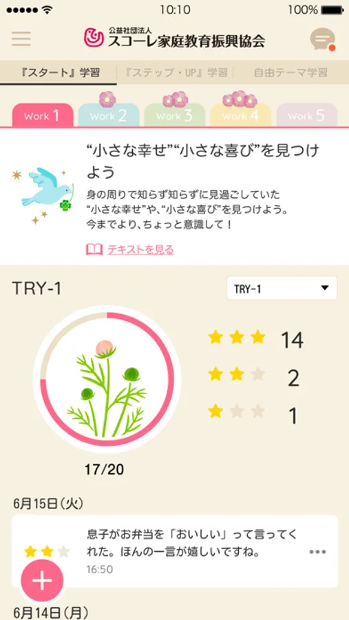 『ステップ・UP』学習は、「学習の習慣化」と「生活テーマの実践」を図るために、あなたが自ら学習するプログラムです。