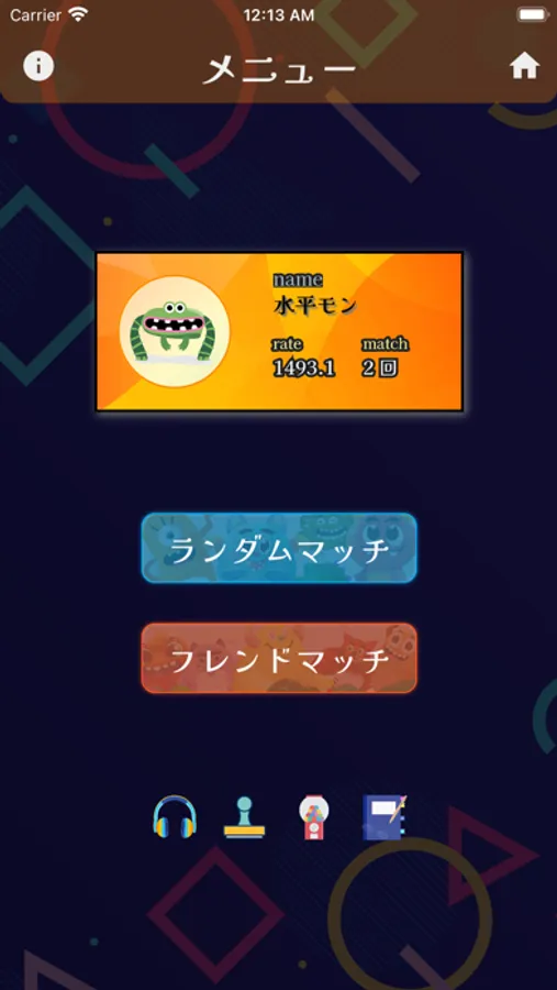 ランダムなプレイヤーと対戦するランダムマッチと、あいことばをもとに友達や家族と対戦ができるフレンドマッチを準備しています。