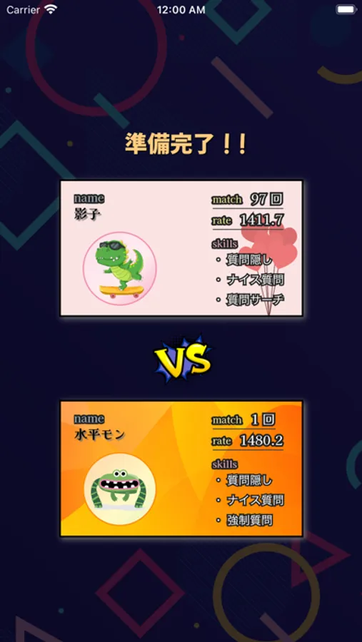 プレイヤーにはお互いに「スポーツや都道府県など誰もが知っているテーマ」が提示されており、質問やスキルの使用を行なってどちらが先に正解に辿り着くことができるのかを競います。