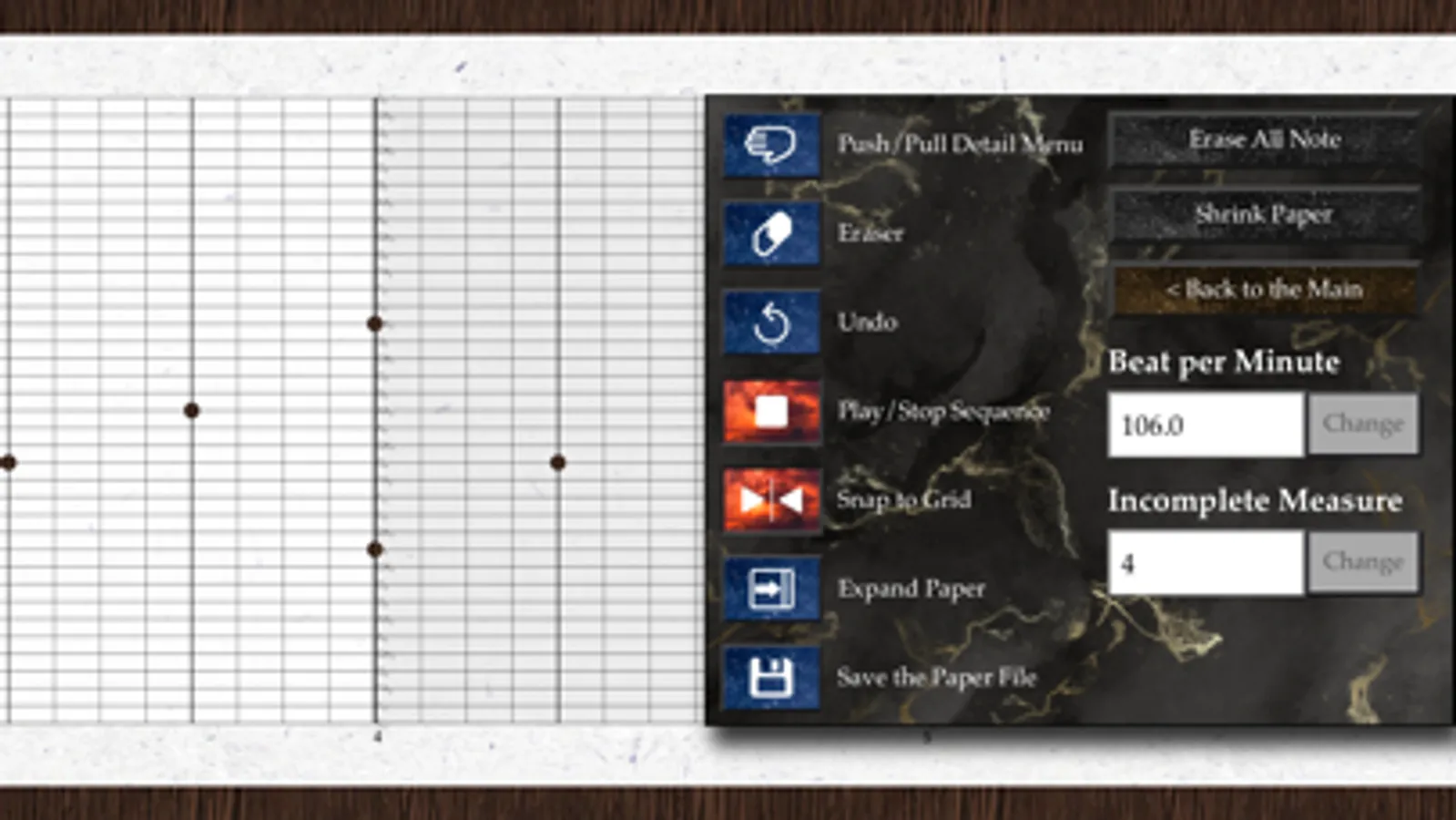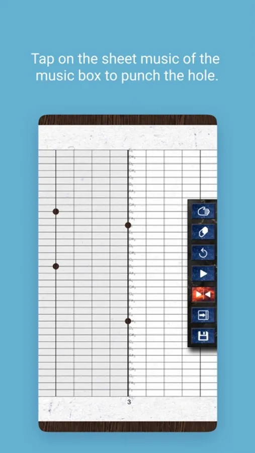 Touch anywhere on the grid on the paper. A note is added as a hole is punched in the paper. There is also sound, so you can feel as if you are writing a real sheet music.