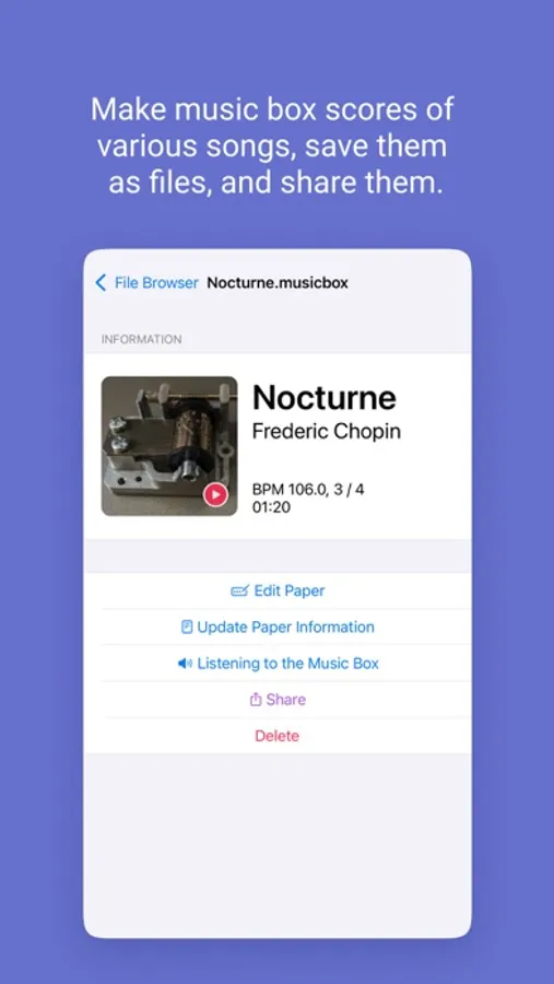 Music Box is reborn on iPhone/iPad. Create your own music box and sheet music.