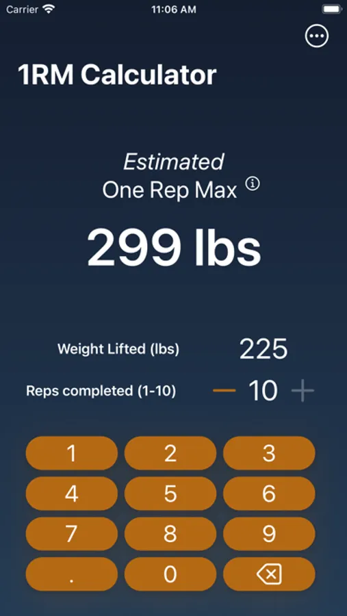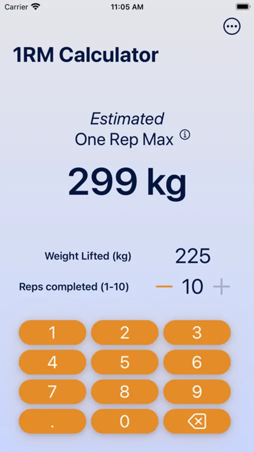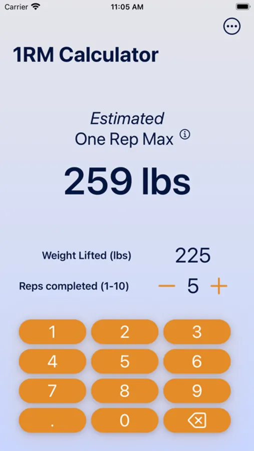 This simple calculator is used to calculate your 1 rep max for maximum output in the gym! Simply enter a weight you've lifted for a certain amount of reps and see your results dynamically displayed on the screen.