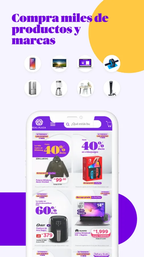 En la app Real Plaza tendrás todo para disfrutar tu visita en nuestros centros comerciales, podrás conocer más acerca de nuestros servicios y además