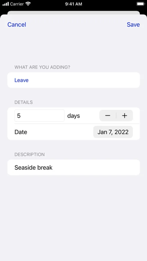 Keep track of your holiday and leave allowance with this simple app.
