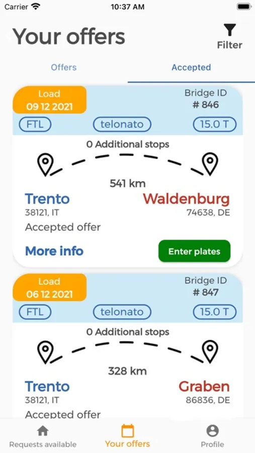 1) Fare offerte a tutte le Richieste di Trasporto disponibili in BRIDGE e piu idonee al tuo parco veicoli.