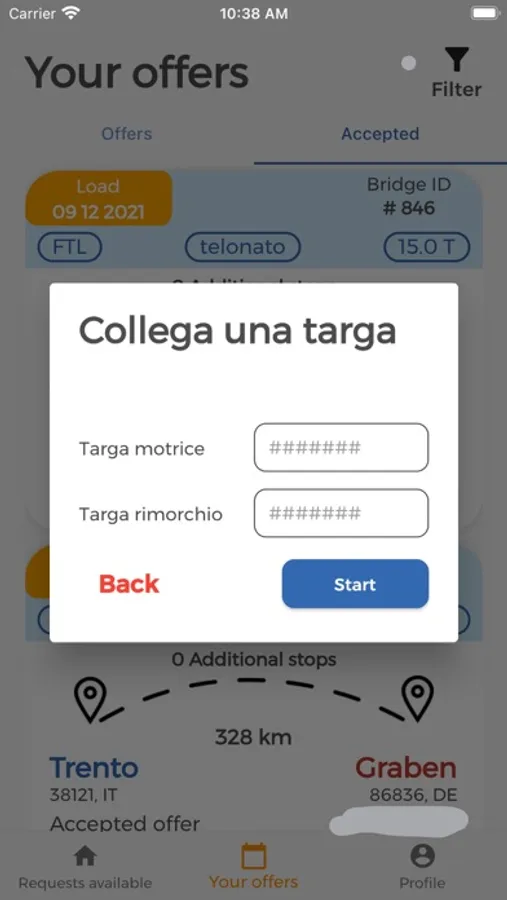 2) Inserire tutti i dettagli utili al completamento della Richiesta di Trasporto a cui e' stata fatta (e accettata) un'offerta.