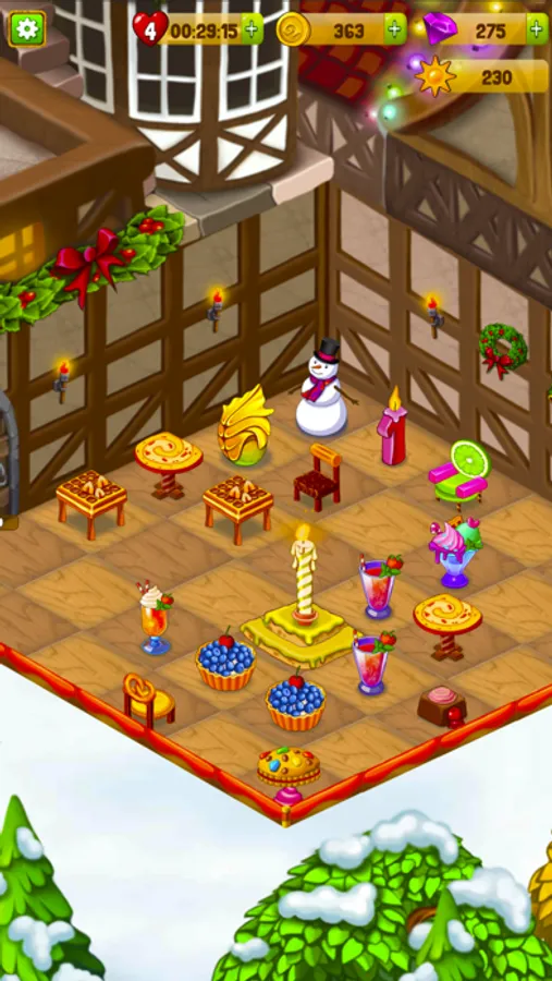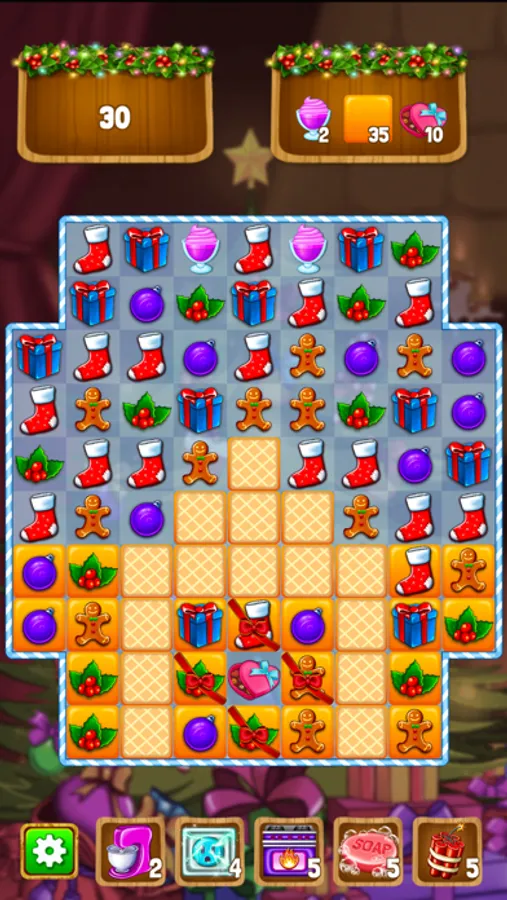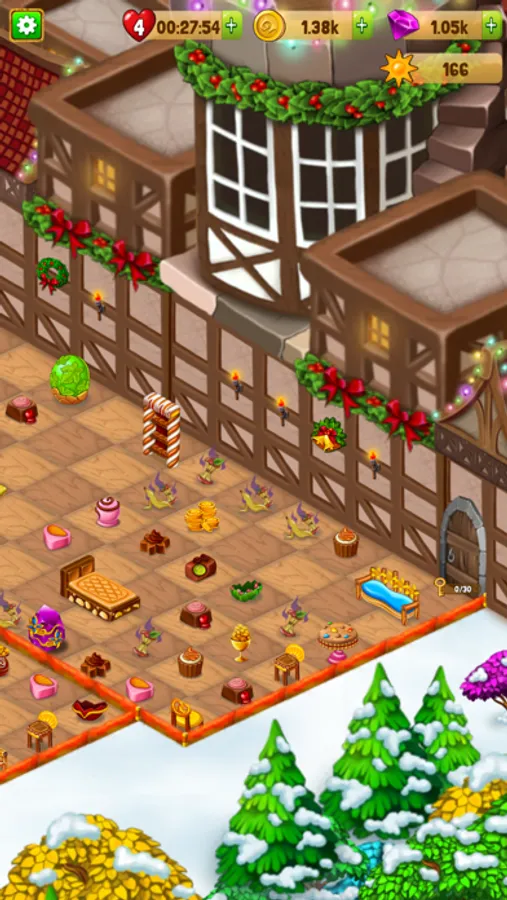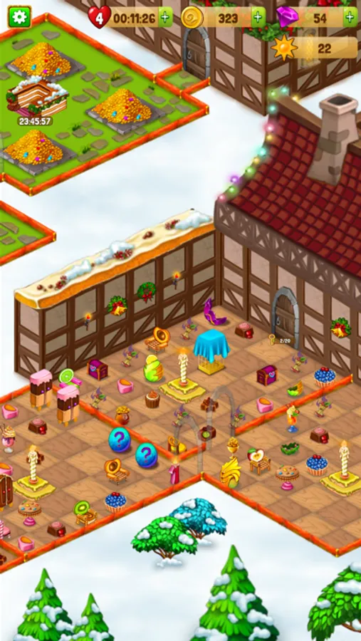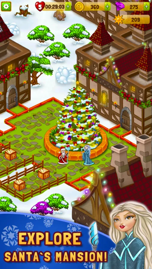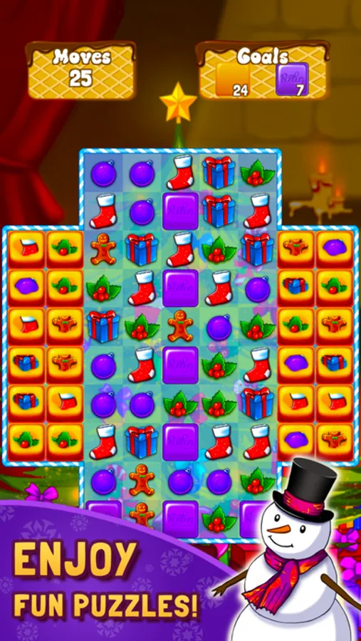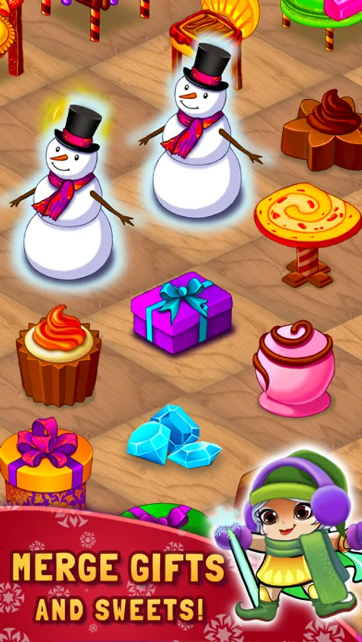 Merge magic items to create toys, gifts, candies, snowmen, and many more. Match-3 gifts and toys to unlock new rooms in the workshop.