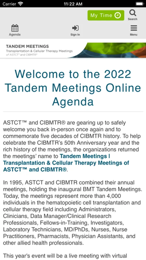 The 2022 Tandem Meetings | Transplantation & Cellular Therapy Meetings of ASTCT and CIBMTR will be held on April 21st-26th, 2022 in Salt Lake City, UT, and virtually. Login to view Sessions and Papers saved as favorites. View schedules, locations, floor plans, and people. Attendees will now be able to facilitate their experience at the meeting using the mobile app.