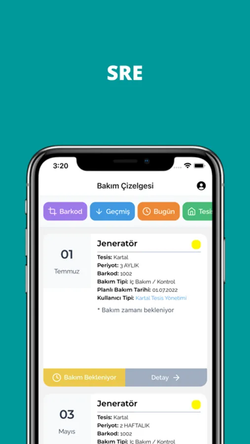 Tesis ekipmanlarının ve dökümanlarının periyodik takibi, yönetimi ve bakım işlemlerinin gerçekleştirilmesi kontrol eder. Bakım işlemlerinin ve ekipmanların raporlarını sunar.