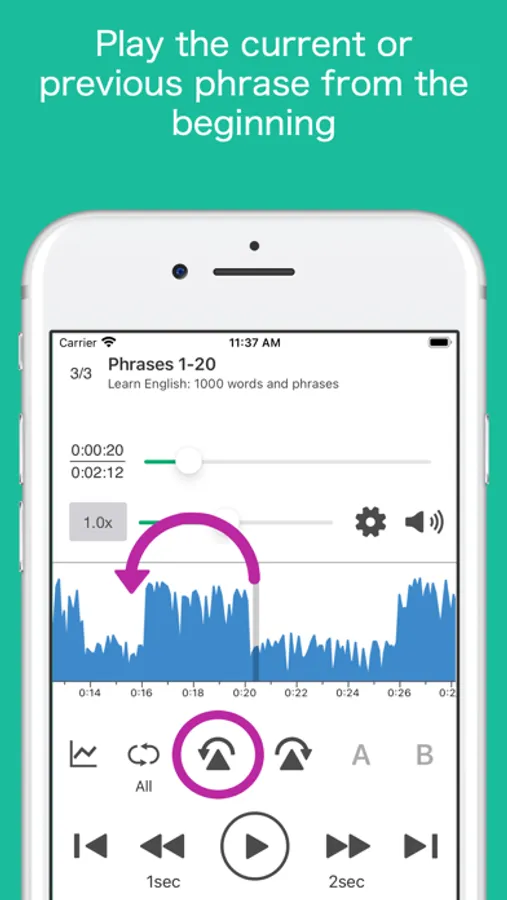 Audio is displayed as a graph, so you can touch or swipe to select and listen to any point. This makes it easy to repeatedly listen to parts of the audio.
