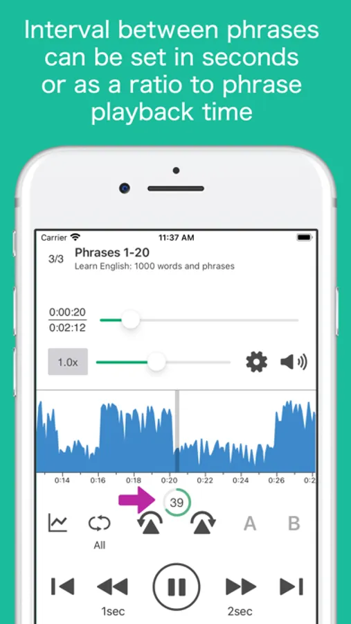 - Set an interval after the playback of a phrase. It can be set in seconds or as a ratio to the phrase’s playback time.
