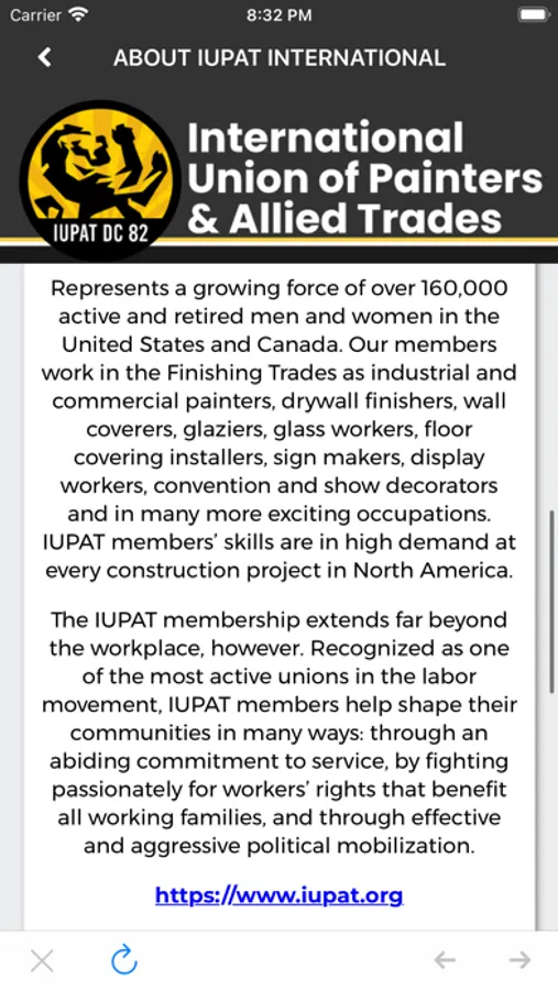The IUPAT DC 82 mobile app is designed to educate, engage and empower our Members. This app is to be used as a tool to better understand the benefits available to our Members working in the Industry. This app is only available to IUPAT DC 82 Members.