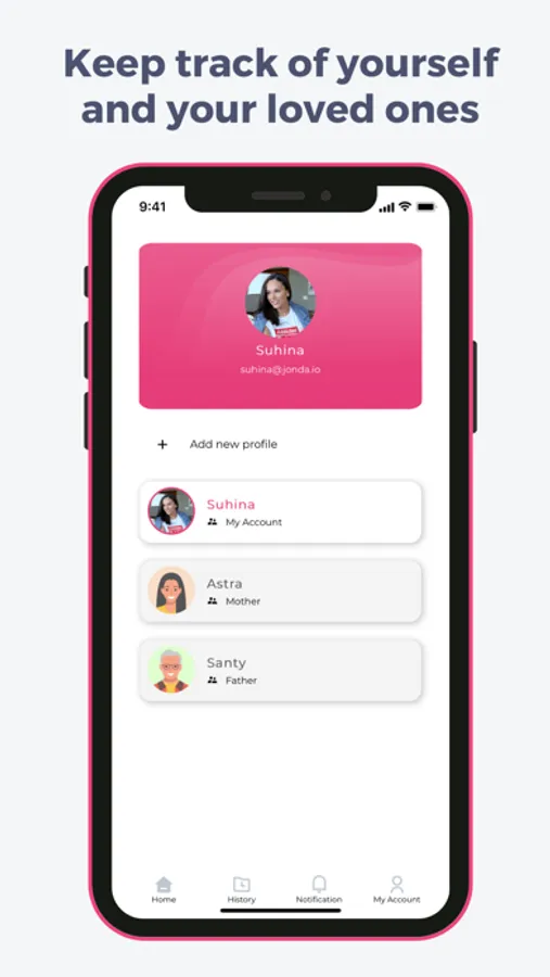 Keep track of yourself and your loved ones with Jonda's multiple profiles and stay on top of your health.
