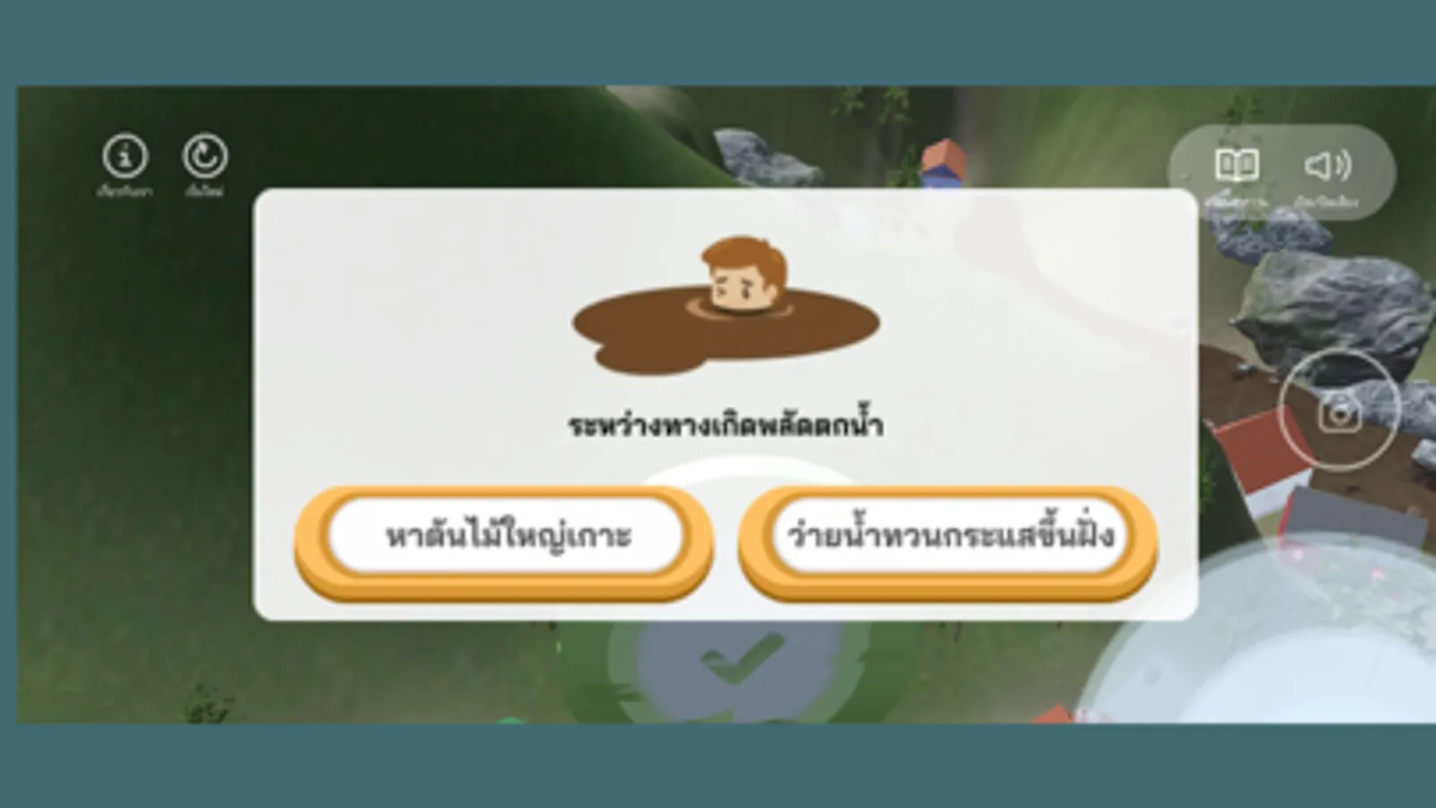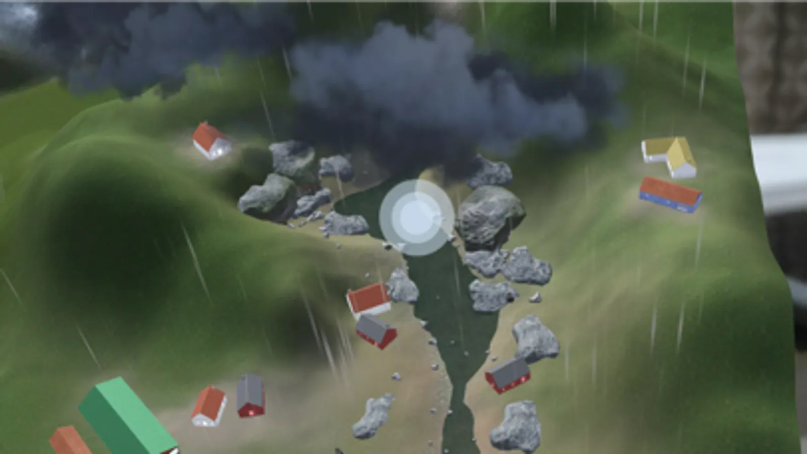 พื้นที่ที่ได้รับผลกระทบจากดินถล่มและน้ำป่าไหลหลาก และ ลักษณะที่ตั้งบ้านเสี่ยงภัยดินถล่ม การจำลองเหตุการณ์การเกิดดินถล่ม ให้ผู้เล่นได้เข้าใจถึงวิธีการรับมือจากดินถล่มและหนีเอาตัวรอดจากดินถล่มให้ได้