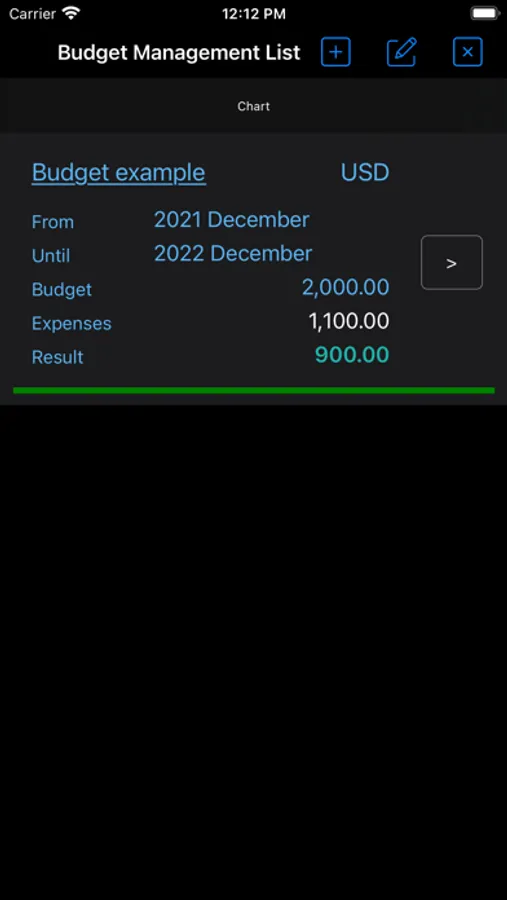 On the top Level you can select a Budget and tap on the Menu on Chart to get a graphical Overview of you finance.
