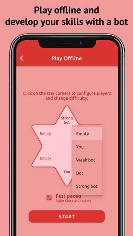 Currently 3 different bots are available: “weak bot”, “medium bot” and “strong bot".