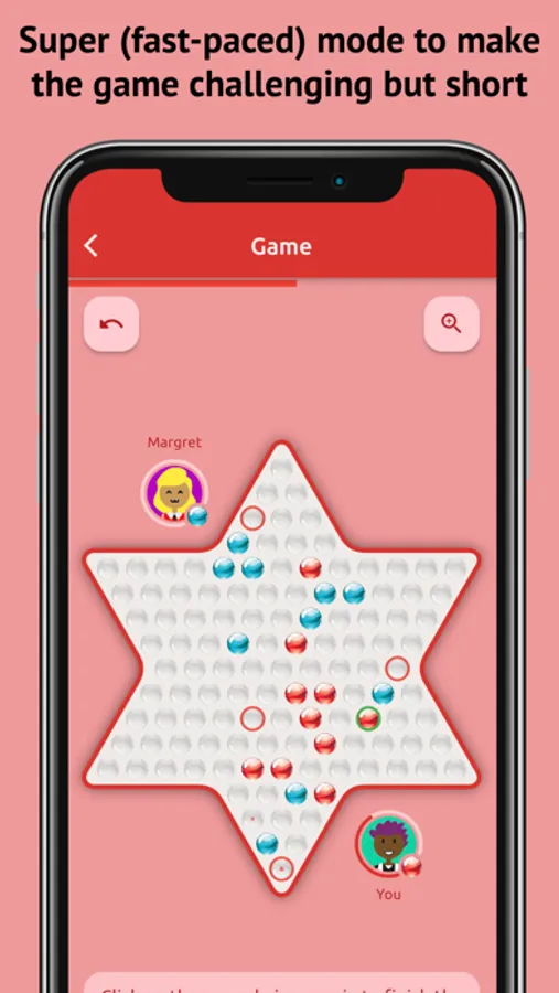- both the normal mode and the Super Chinese Checkers mode (the fast-paced mode usually takes much less time to finish) are available.