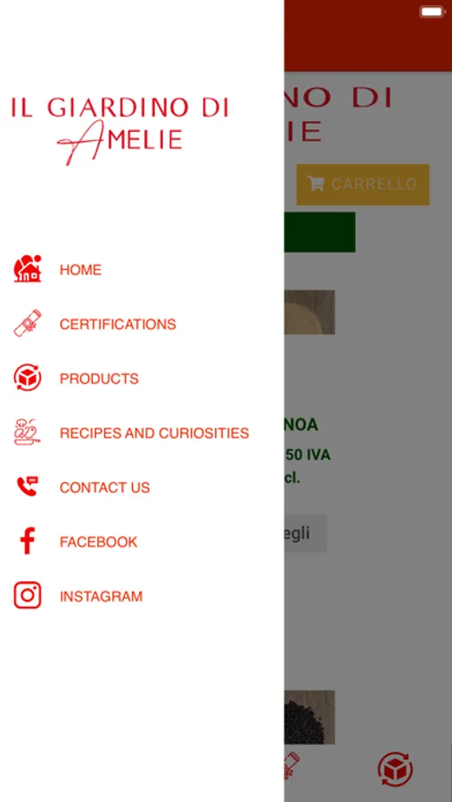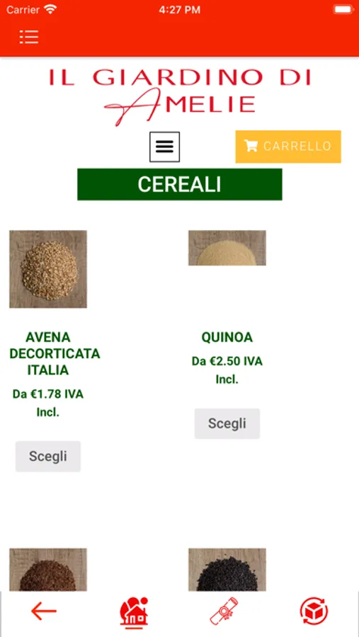 App per la vendità di prodotti alimentari di frutta secca e prodotti naturali