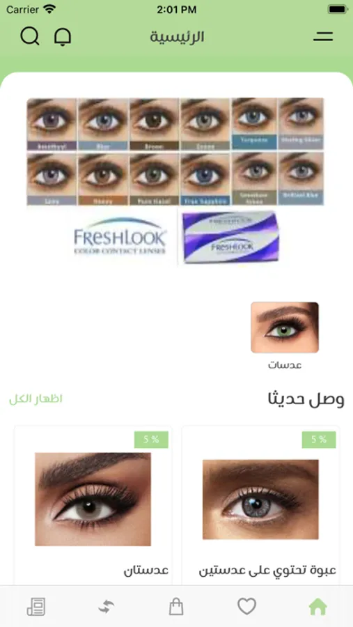 تطبيق لمتجر لبيع العدسات اللاصقة والنظارات