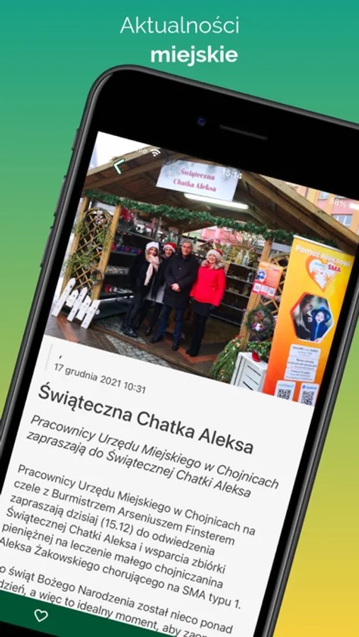 Używaj aplikacji !go Chojnice, aby poznać różne instytucje i komunikować się z nimi. Czytaj najnowsze wiadomości i komunikaty. Poznaj swój samorząd i komunikuj się z radnymi oraz władzami miasta. Pomagaj miastu rozwijać się - zgłaszaj usterki mienia oraz bierz udział w konsultacjach społecznych i badaniach opinii.