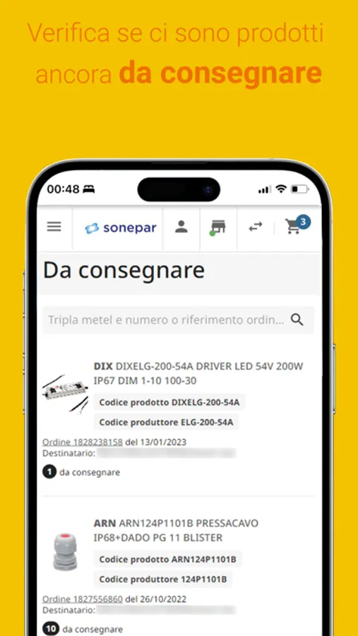 App Sonepar è l'applicazione mobile che ti permette di ordinare 24 ore su 24, 7 giorni su 7!