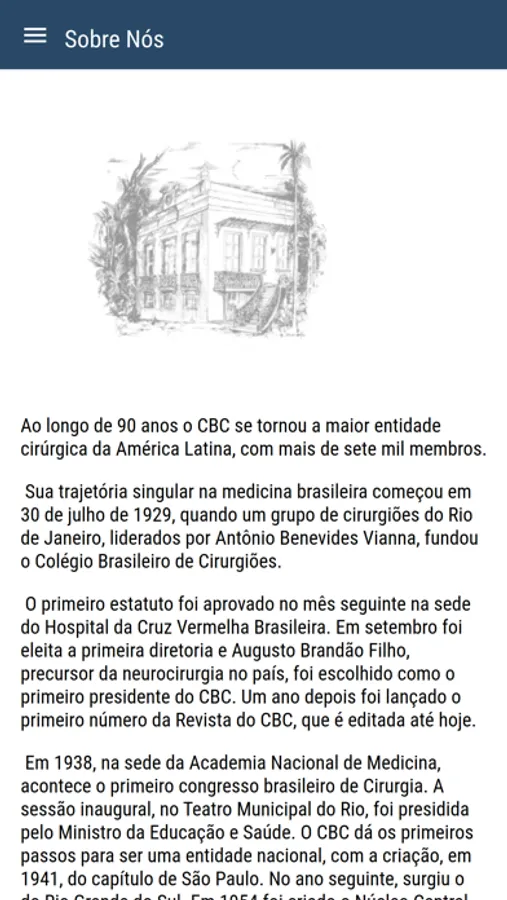 O propósito do Aplicativo do Colégio Brasileiro de Cirurgiões é apresentar aos nossos membros melhor interação entre o associado e a comunidade de cirurgiões Brasileira. Através do aplicativo você terá acesso rápido as novidades da cirurgia no Brasil, receberá notificações de eventos importantes da entidade, poderá atualizar seu cadastro, ver seu histórico financeiro e muito mais!