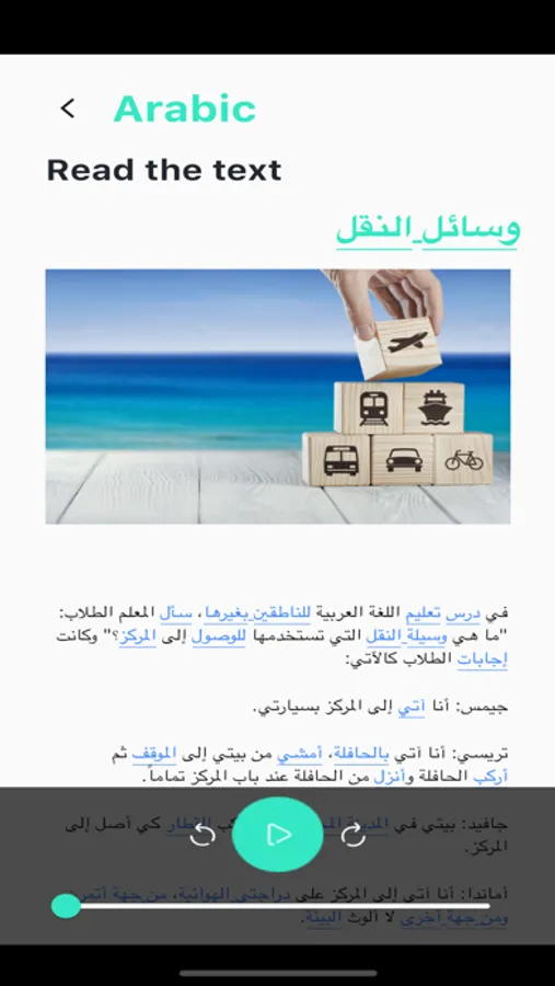 Learning Arabic alphabet, phrases, sentences and proverbs.