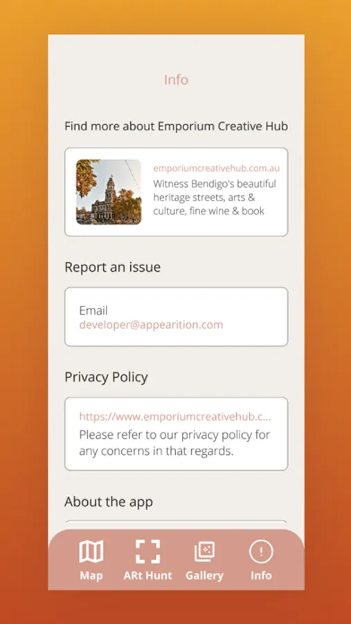 6. To enter the prize draw, eligible entrants must, during the Promotional Period, locate at least 3 ARtworks on the Bendigo ARt Trail (“App”) and provide their name and email address via the App.