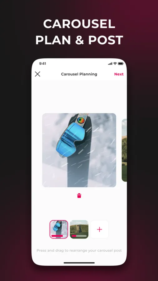Plan your posts for several days in advance with the ability to add a description. For safe use of this feature - the app was internally tested by INSTAGRAM's testing team.