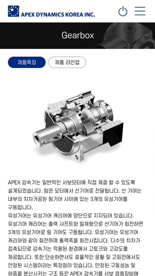아펙스 다이나믹스 코리아는 자동화 기계산업의 필수 컴포넌트 개발과 생산에 중점을 두고 서보모터용 고정밀 감속기, 랙앤피니언, 스마트 윤활시스템, 싱글모터 파워 툴 터렛 등의 제품을 생산 판매하고 있습니다.
