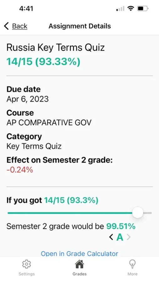 You can also calculate your GPA (weighted and unweighted), see what your grade would be after completing certain assignments, and more.