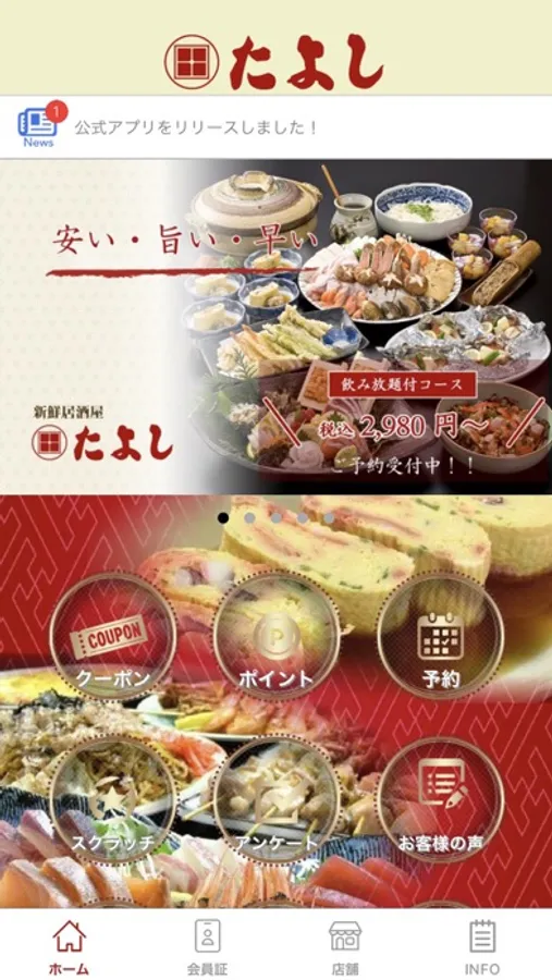 お得な公式アプリをインストールして新鮮居酒屋たよしをご利用下さい!