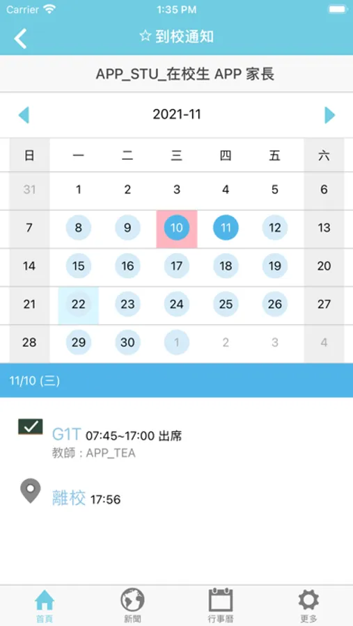 5. 行事曆:依月曆查看學校活動和假日。