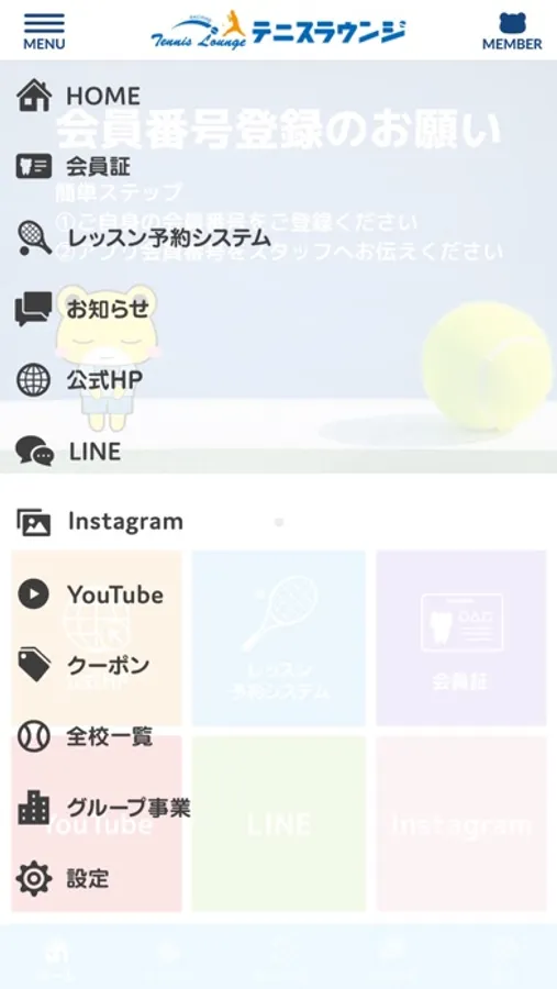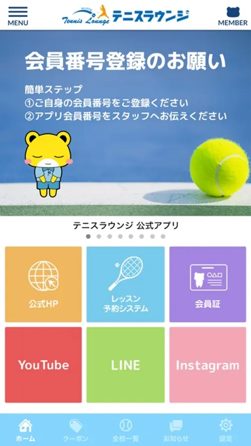 ※テニスラウンジ会員さま向けのアプリです。会員でない方もご利用いただけますが会員証機能はご利用いただけません。