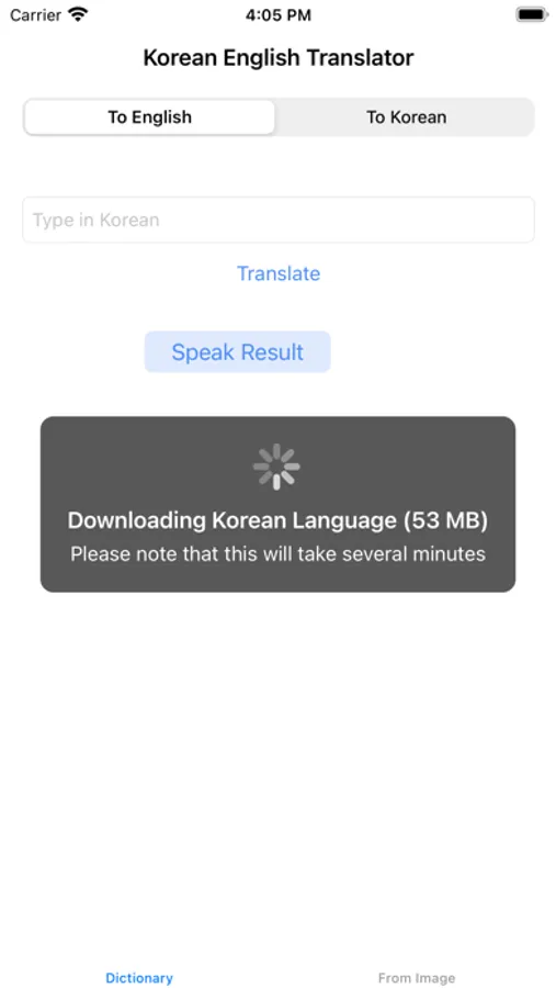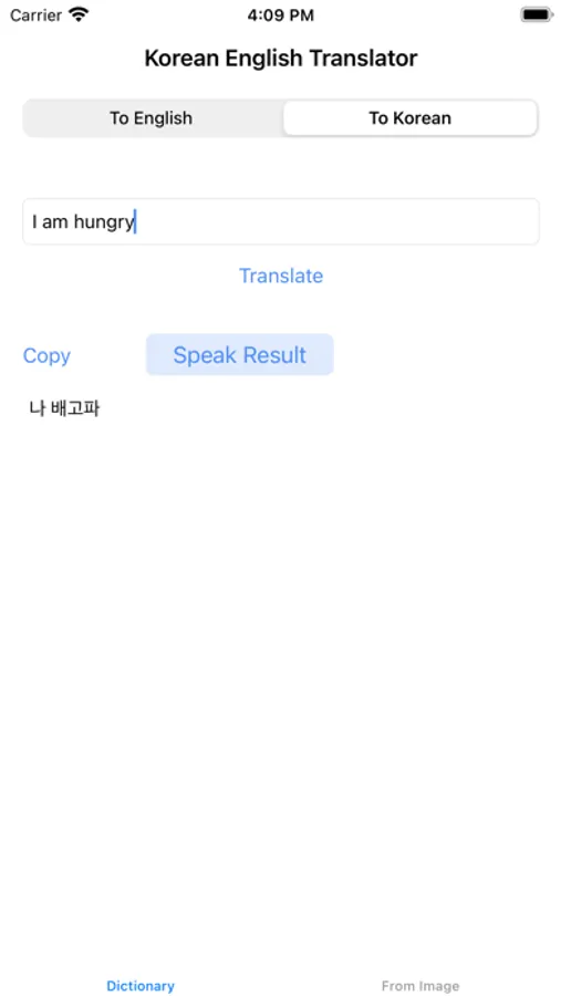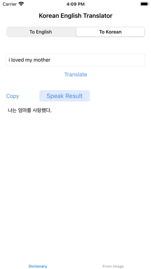 Using this app you can easily translate English to Korean or Korean to English, not limited to a single word, you can translate multiple sentences using this app. Also this support for translating texts in Images, first you have to select an Image from From Image section, then you will extract all letters in the list, then click on a word in the list, then you can translate it to Korean or English