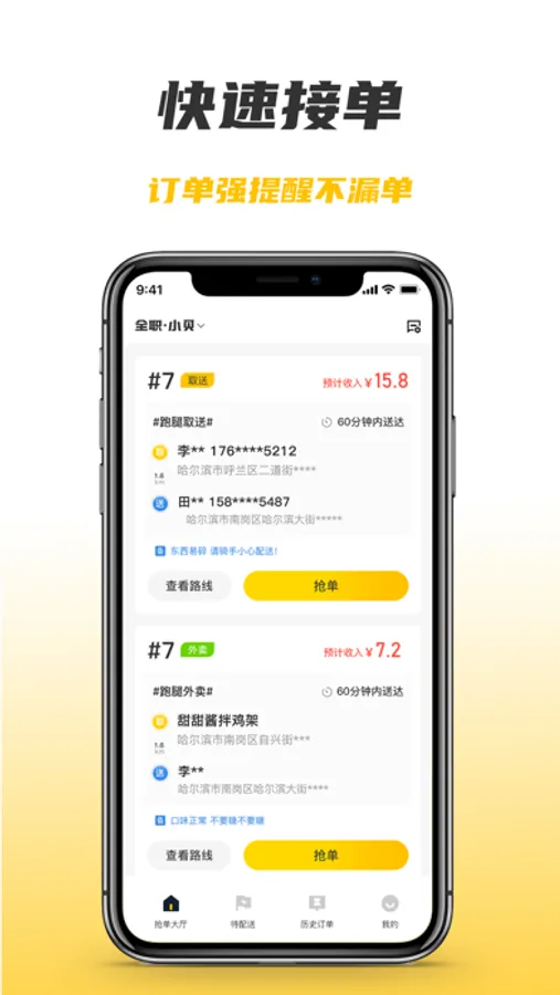 是一款具有抢单,取货,配送,以及配送记录的一款专用和快点外卖配送人员打造的APP,支持新订单语音提醒,路线导航等一系列使用功能,方便配送人员使用