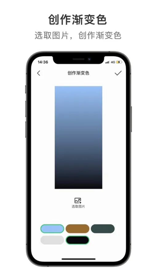 -- 创作渐变色:选取图片,自动挑选颜色,创作专属的渐变色;