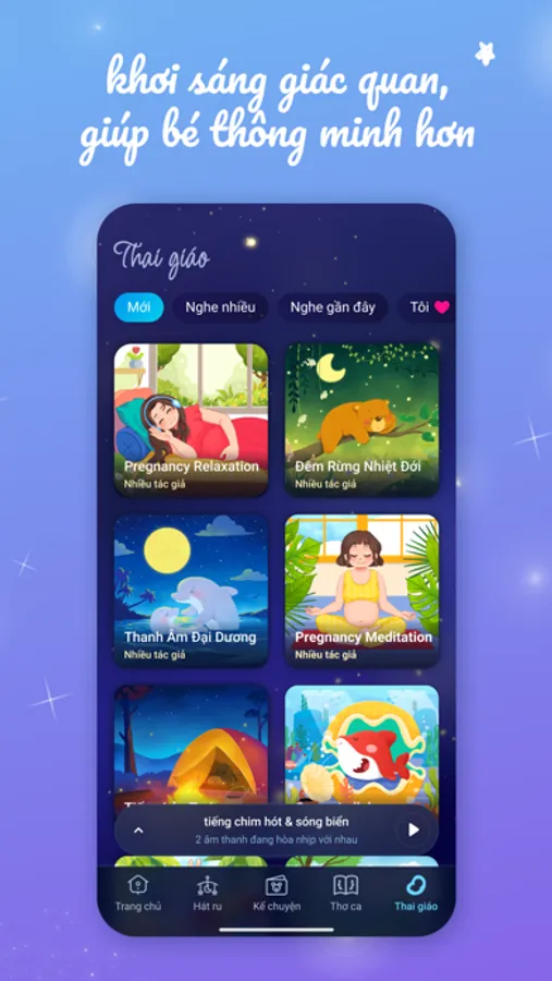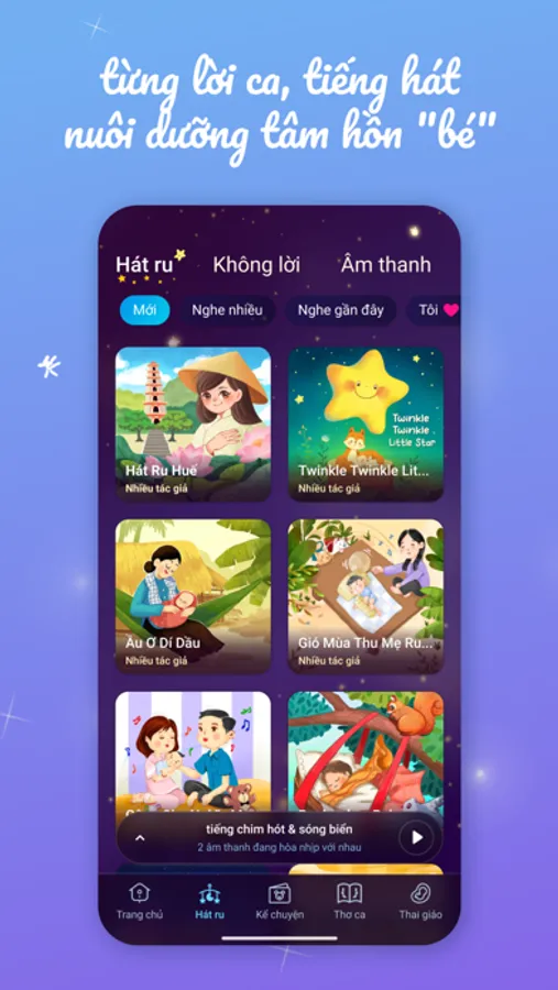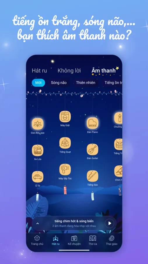 Vô cùng đa dạng như: tiếng nước chảy, tiếng suối, tiếng chim hót, tiếng côn trùng… Đây là những âm thanh giúp trí não bé phát triển vượt bậc.