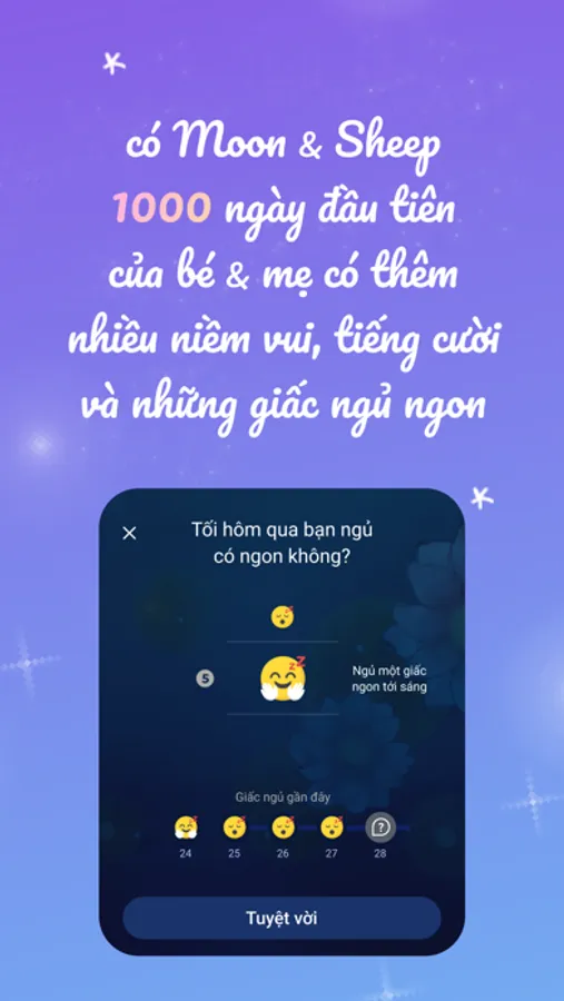 Moon & Sheep là ứng dụng ngủ ngon bao gồm các tính năng nổi trội như: Thai giáo, Kể chuyện, Hát ru, m thanh trắng, Nhạc không lời… đặc biệt phù hợp với mẹ bầu và các bé dưới 3 tuổi. Các truyện ngắn hay các bản nhạc, âm thanh du dương sẽ giúp bé nhanh chóng chìm sâu vào giấc ngủ. Đồng thời, Moon & Sheep truyền cảm hứng, để thời gian trước khi đi ngủ của bé trở thành khoảng thời gian giá trị của cả gia đình.