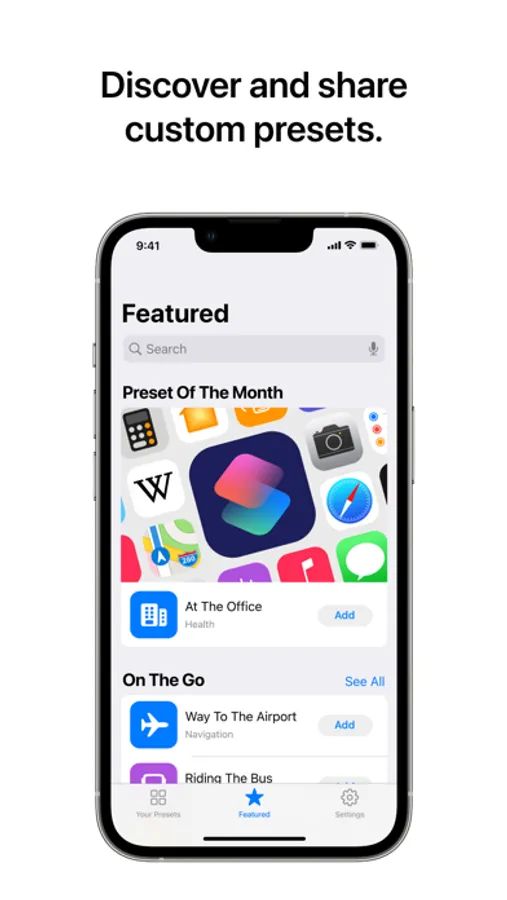 - Users can discover and download curated presets built by businesses on the Featured tab.