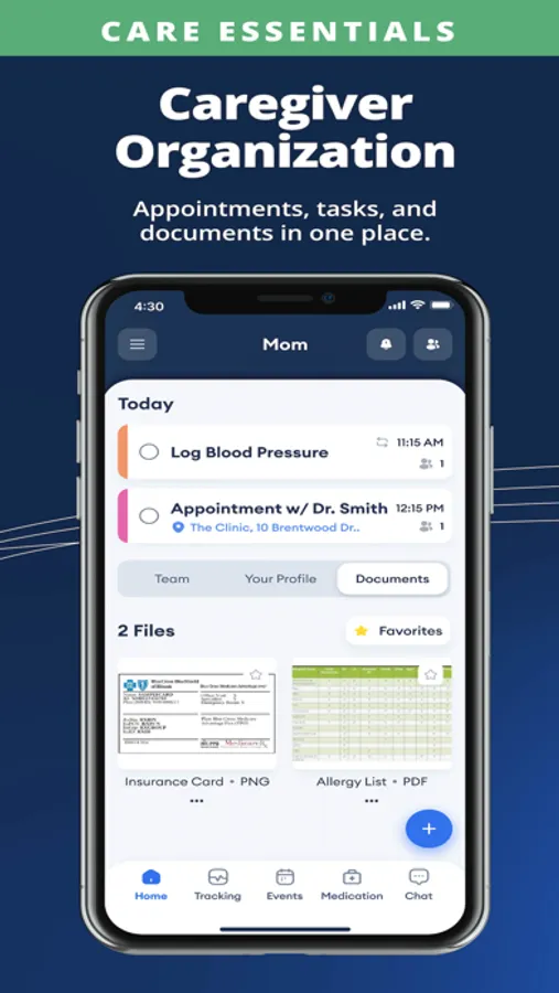 Invite siblings and anyone else involved in caregiving (including paid caregivers) to use the app (free of charge to those you invite). Create a one-stop hub of key info for everyone (meds, doctor lists, health documents like insurance cards). Coordinate care, add members to certain events, and create group chats or direct messages.
