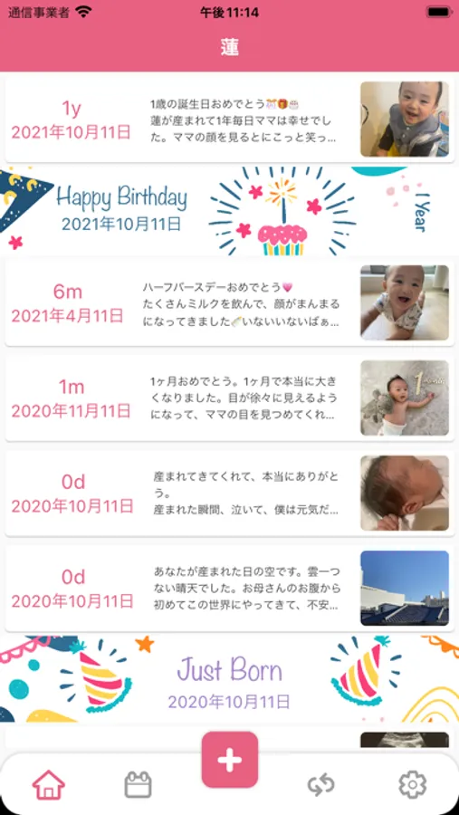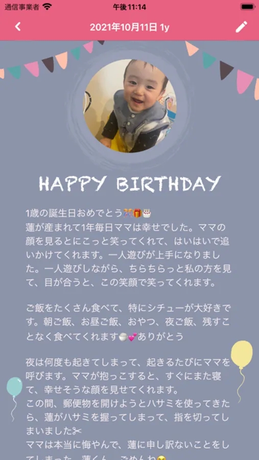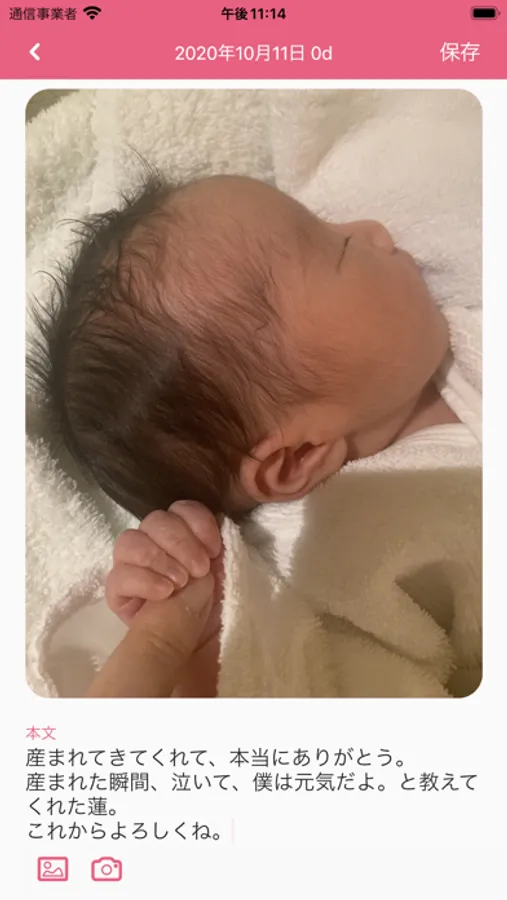 我が子への手紙、成長記録、育児日記を写真を添えて、残すことができます。