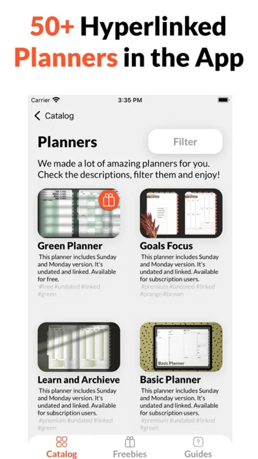 1. 140+ Planners - hyperlinked, professionally made, amazing style.