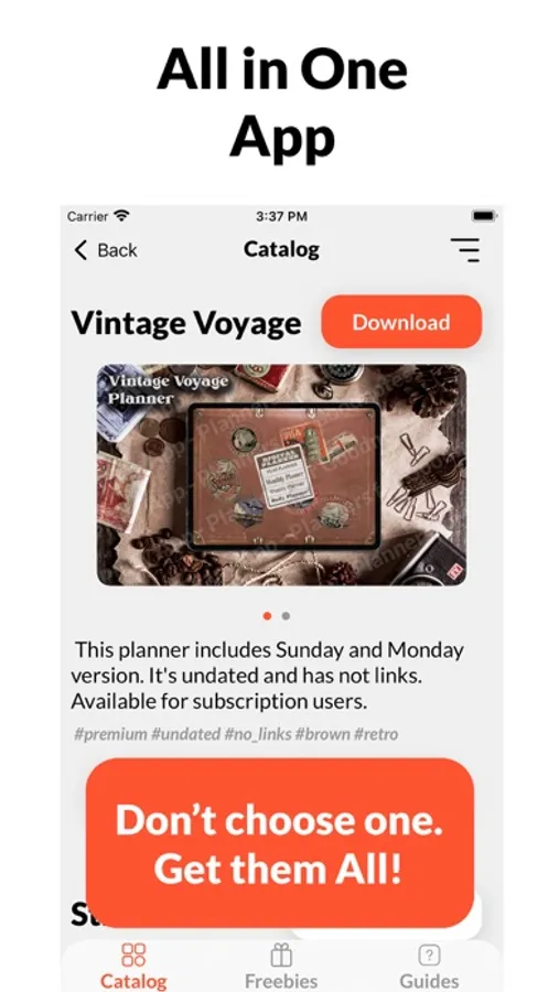 You can get all the content with the single subscription. You don’t have to choose only one planner, sticker pack, tracker or cover. You can try all of them without any troubles and money waste.