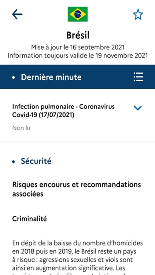- Un lien vers le service Ariane pour enregistrer votre voyage et être alerté si la situation dans le pays visité le justifie.