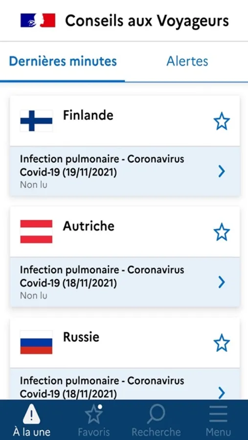 - Des «dernières minutes» régulièrement actualisées : manifestation, attentat, épidémie, séisme, etc.