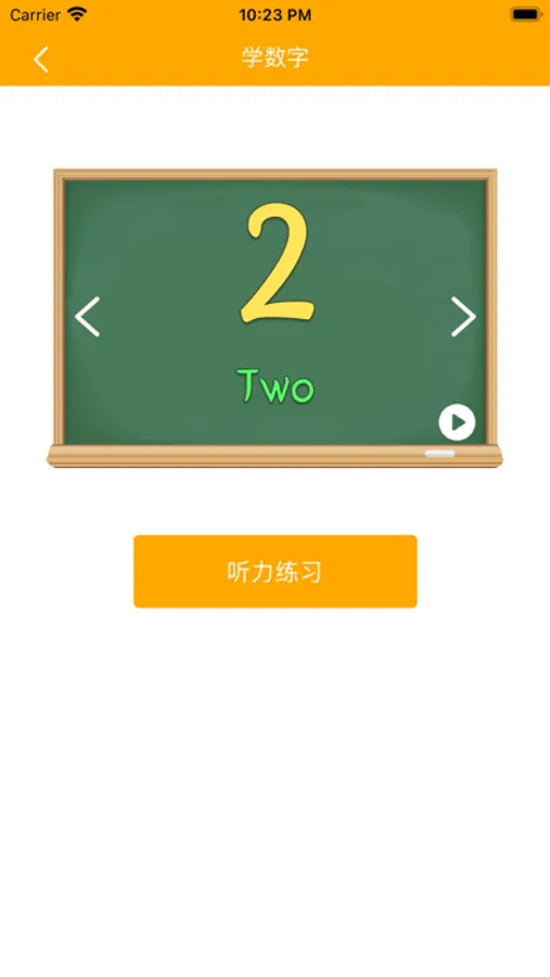 「学字母」这里包含26个英语字母,每个字母对应有发音以及对应的单词。为了更好的锻炼宝宝的听英语的能力,特地配备了测试模式,宝宝可以通过随机的数字发音点击自己听到的数字进行听力练习。