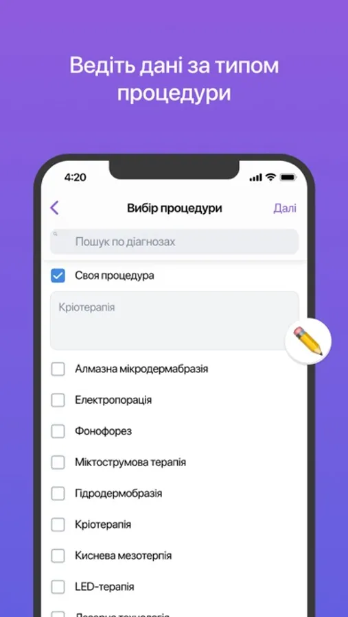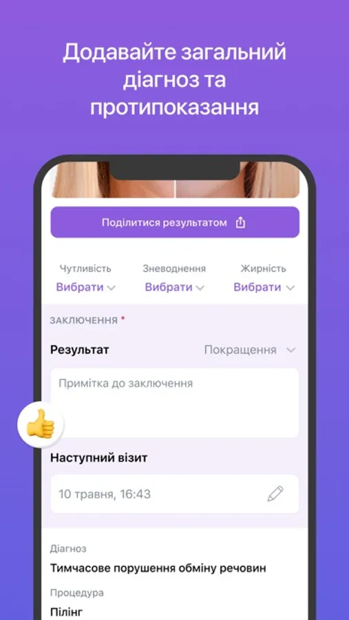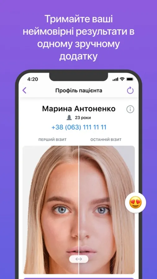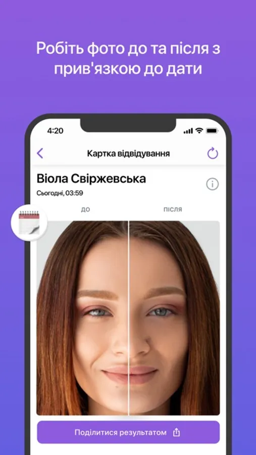 - Фіксація фоторезультатів До/Після з прив'язкою до дати